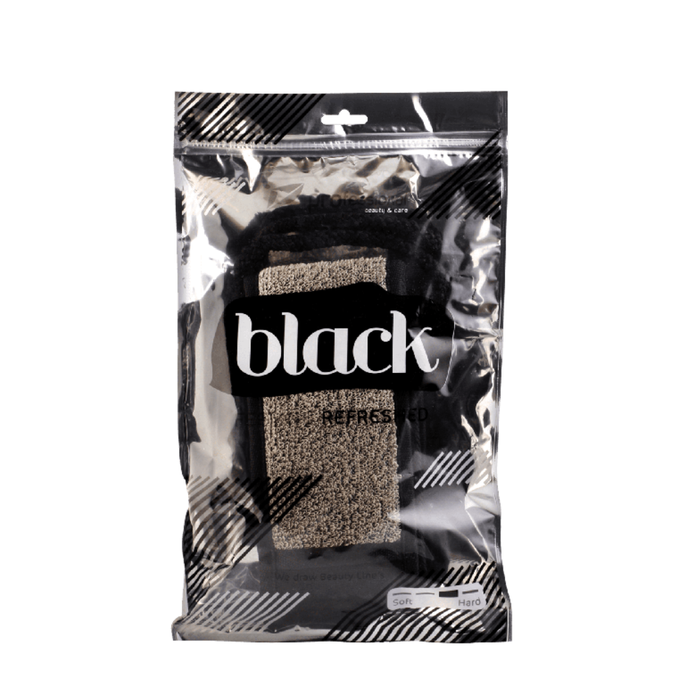 ليفة ظهر سوداء مصنوعة من القماش عالي الجودة المصمم خصيصا ليناسب تنظيف البشرة بعمق كما انها مزودة بمسكتين لضمان سهولة التحكم وتنظيف الجسم بشكل فعال والوصول الى جميع اماكن الجسم .