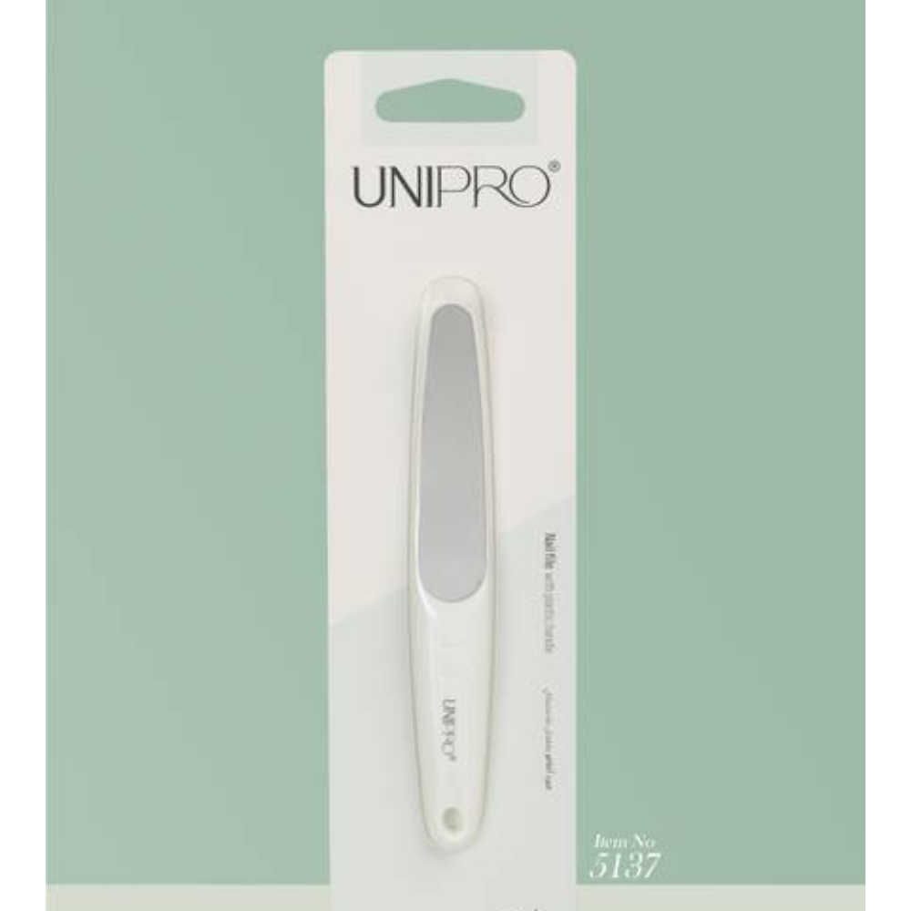 اضيفي لأظافرك مظهر أكثر نعومة وحيوية ونضارة مع مبرد أظافر يوني برو المعدني المصنوع من رقائق المعدن أو ورق الصنفرة عالي الجودة والذي يعمل على تنعيم الاظافر وتلميعها بسهولة بفضل المقبض البلاستيكي الأنيق سهل الاستخدام