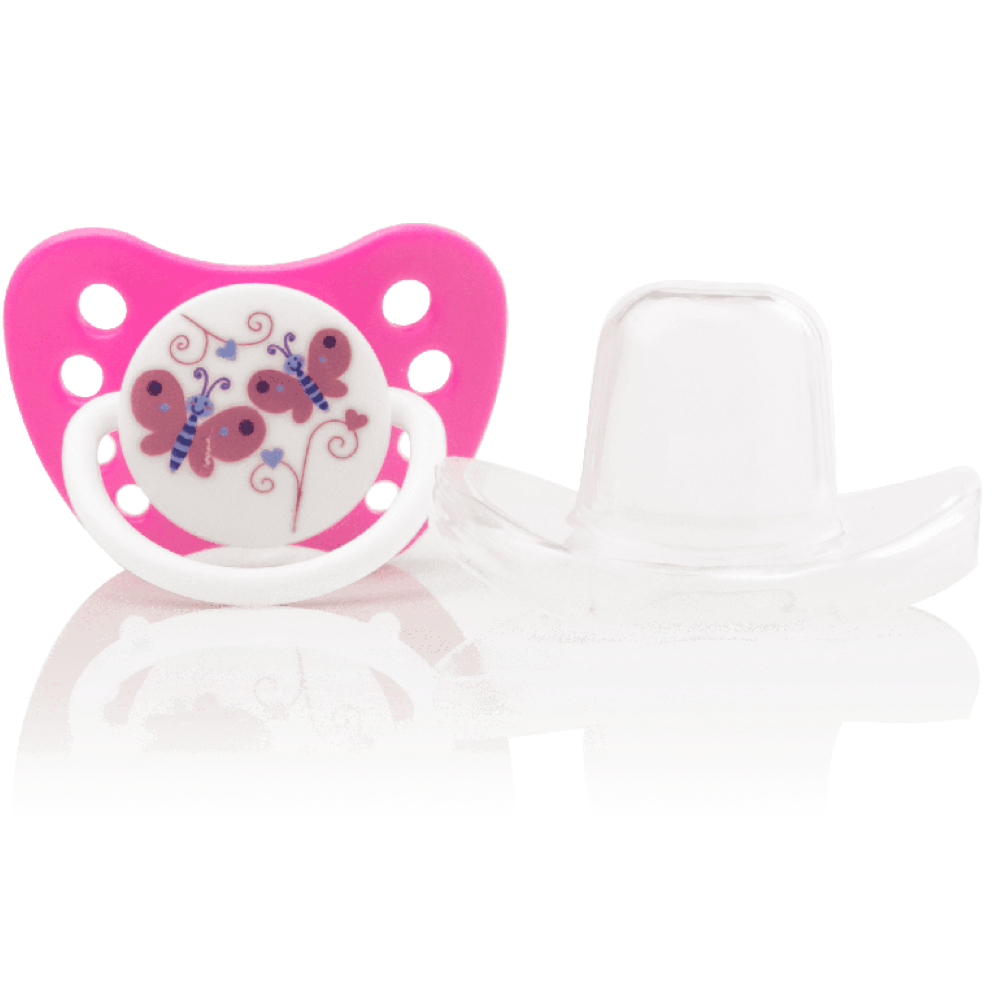 The curved design, which includes a nostril, ensures that the baby can breathe comfortably while using the pacifier. The pacifier also contains holes that allow air to flow to the baby's sensitive skin.