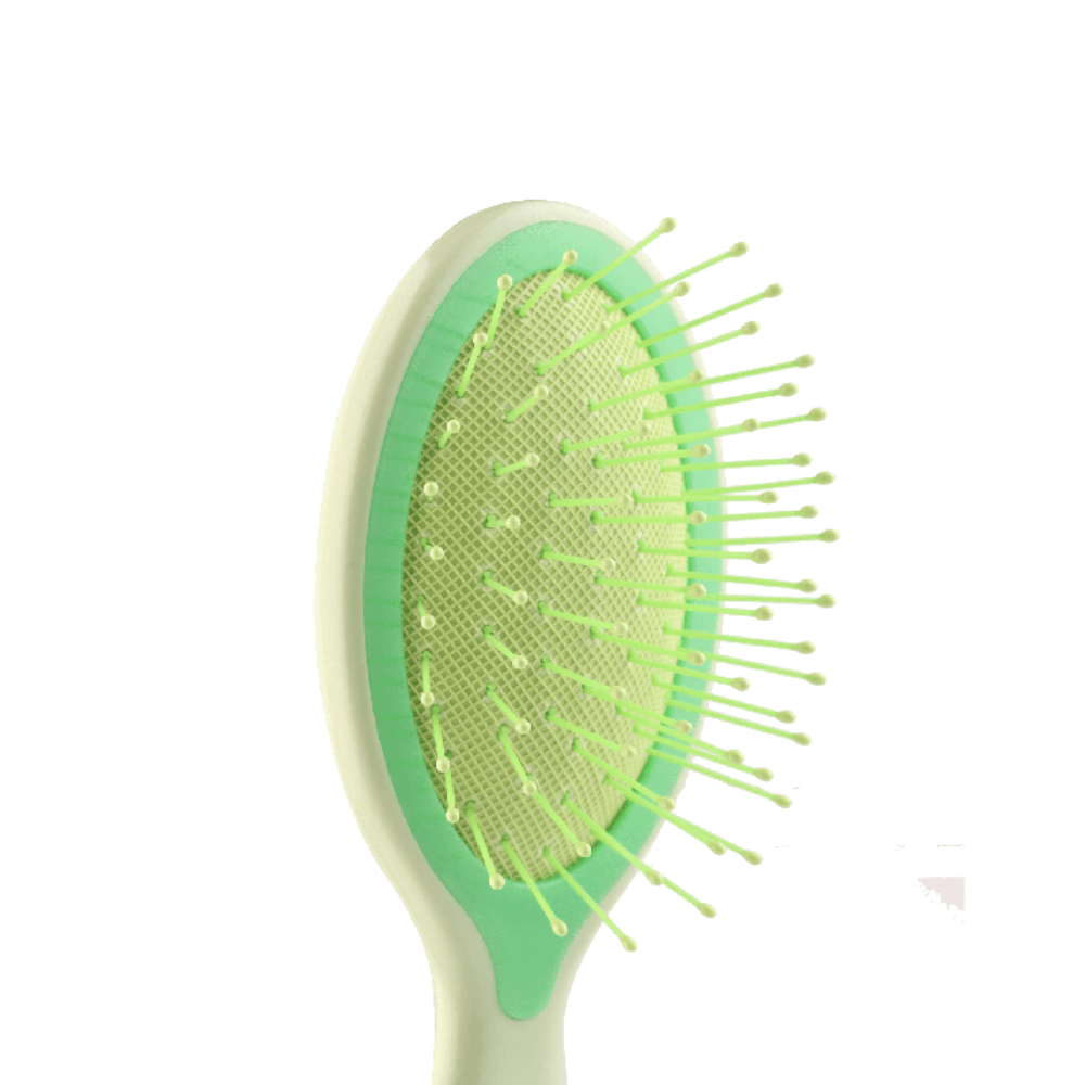 High quality hair brush made of anti-static nylon featuring large teeth with rounded ends that massage the scalp to improve hair growth and enhance the absorption of care products.